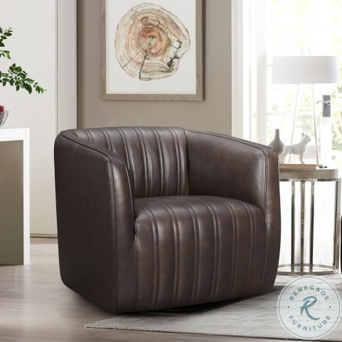 Aries Espresso Genuine Leather Swivel Barrel Chair From Armen Living Coleman Furniture